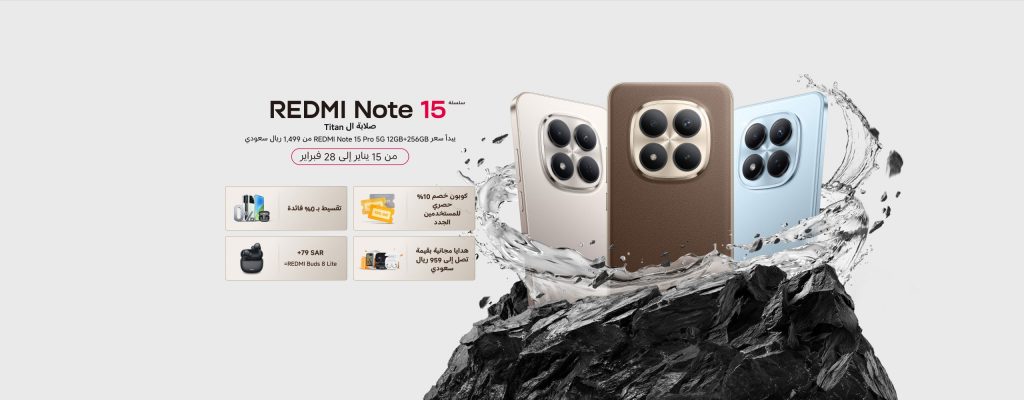 أعلنت شركة شاومي السعودية عن إطلاق هاتفي REDMI Note 15 Pro 5G و REDMI Note 15 Pro في السوق السعودي، في إطار توجهها نحو تقديم هواتف ذكية تجمع بين المتانة والجودة والأداء المستقر، بما يتناسب مع طبيعة الاستخدام اليومي والظروف المناخية القاسية في السعودية ودول العالم.